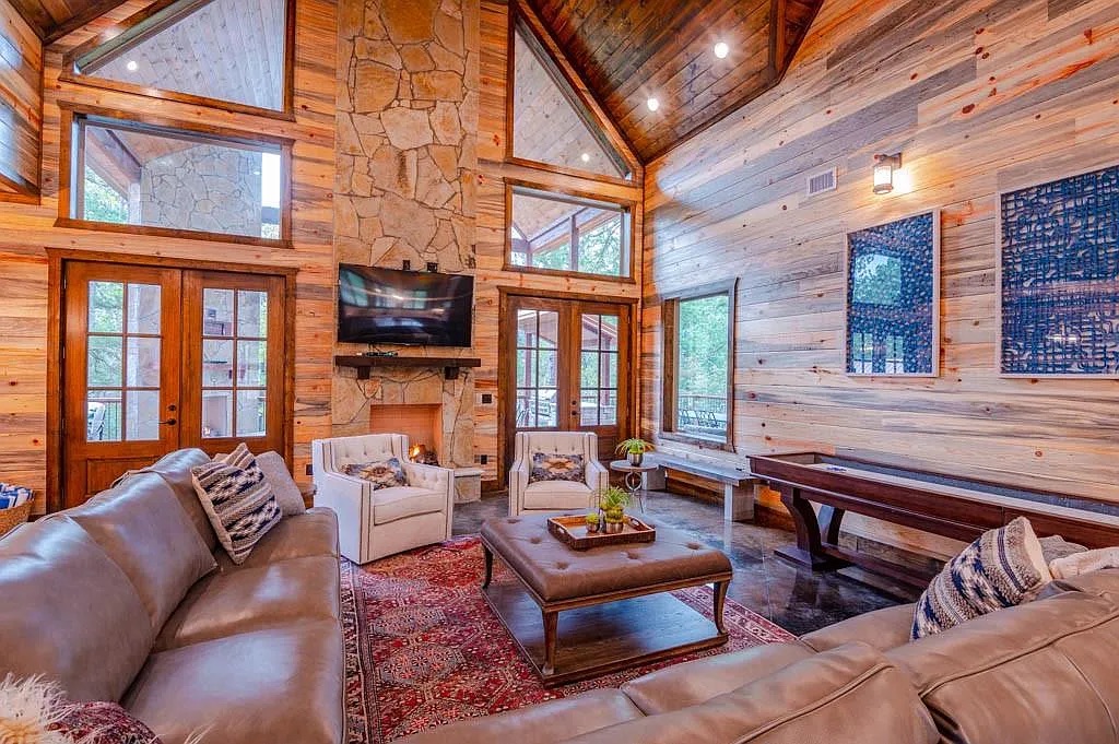 ✔ Outdoor fire pit, cornhole, and charming string lights✔ Private hot tub and gas grill on a spacious deck✔ Detached garage suite with game room, bathroom & extra sleeping space✔ Large living room with gas fireplace and smart TV✔ Sleeps up to 12 guests comfortably✔ Fully stocked kitchen and dining area✔ Washer & dryer in both the main cabin and garage suite