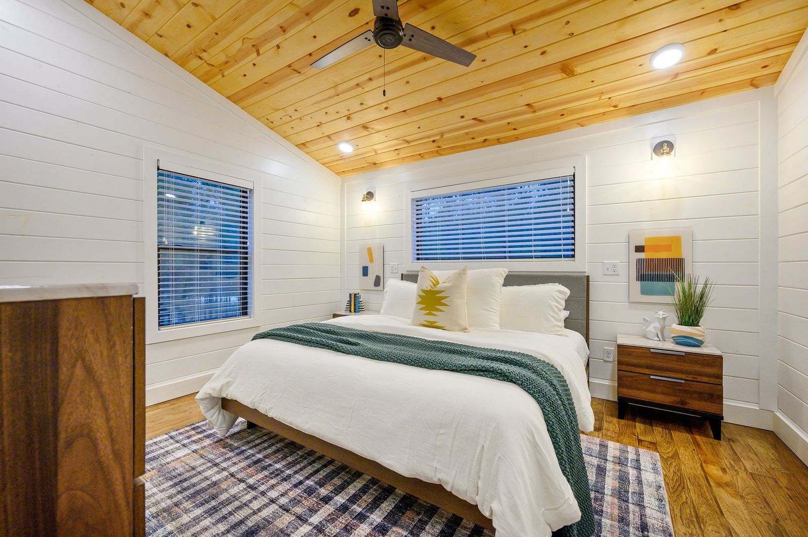 Bourbon Basin comfortably sleeps up to 20 guests in beds, with a total of 4 private king suites and an upstairs bunk area.
