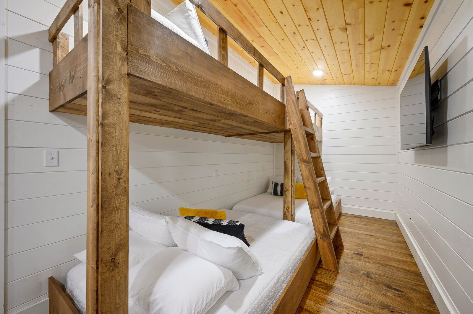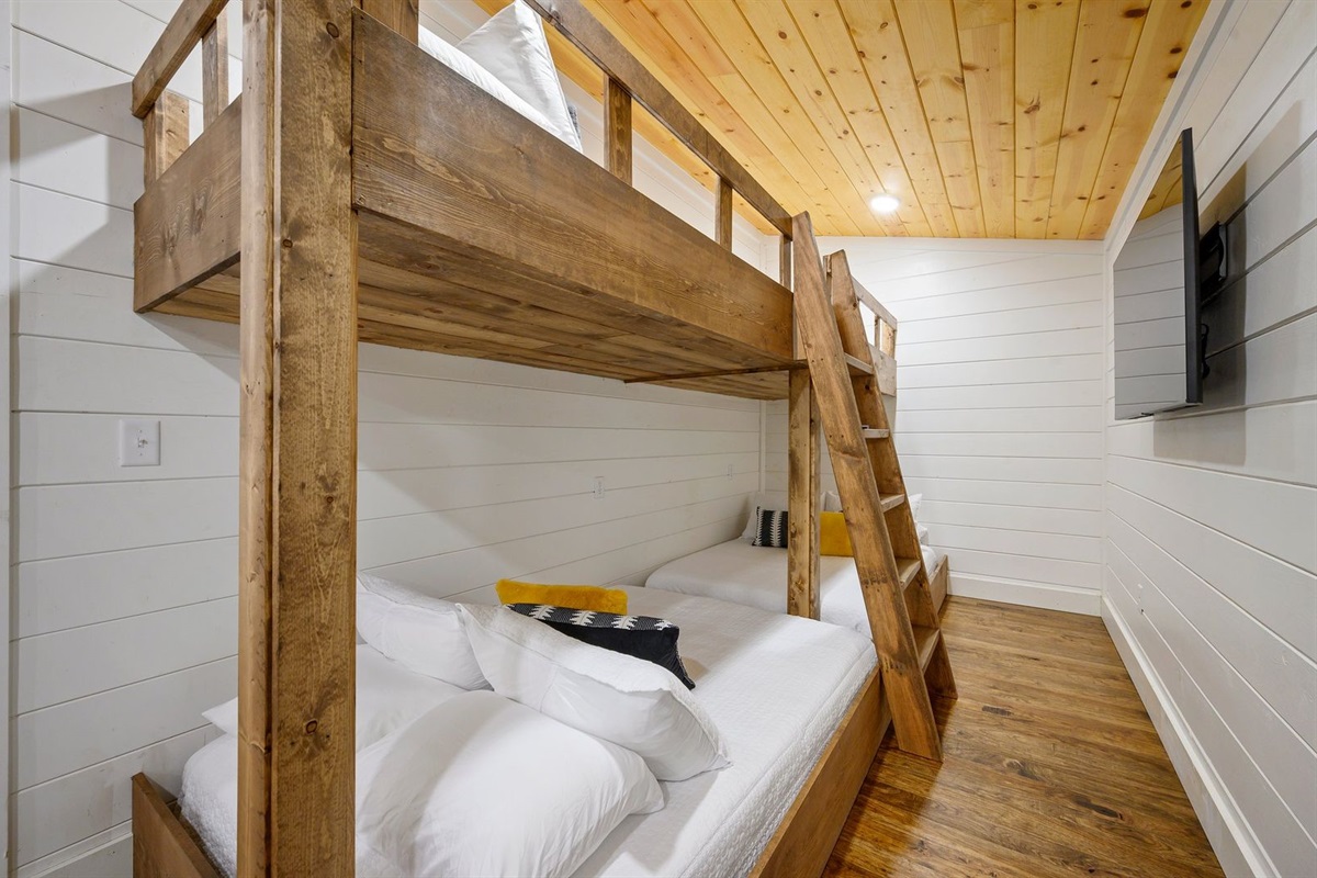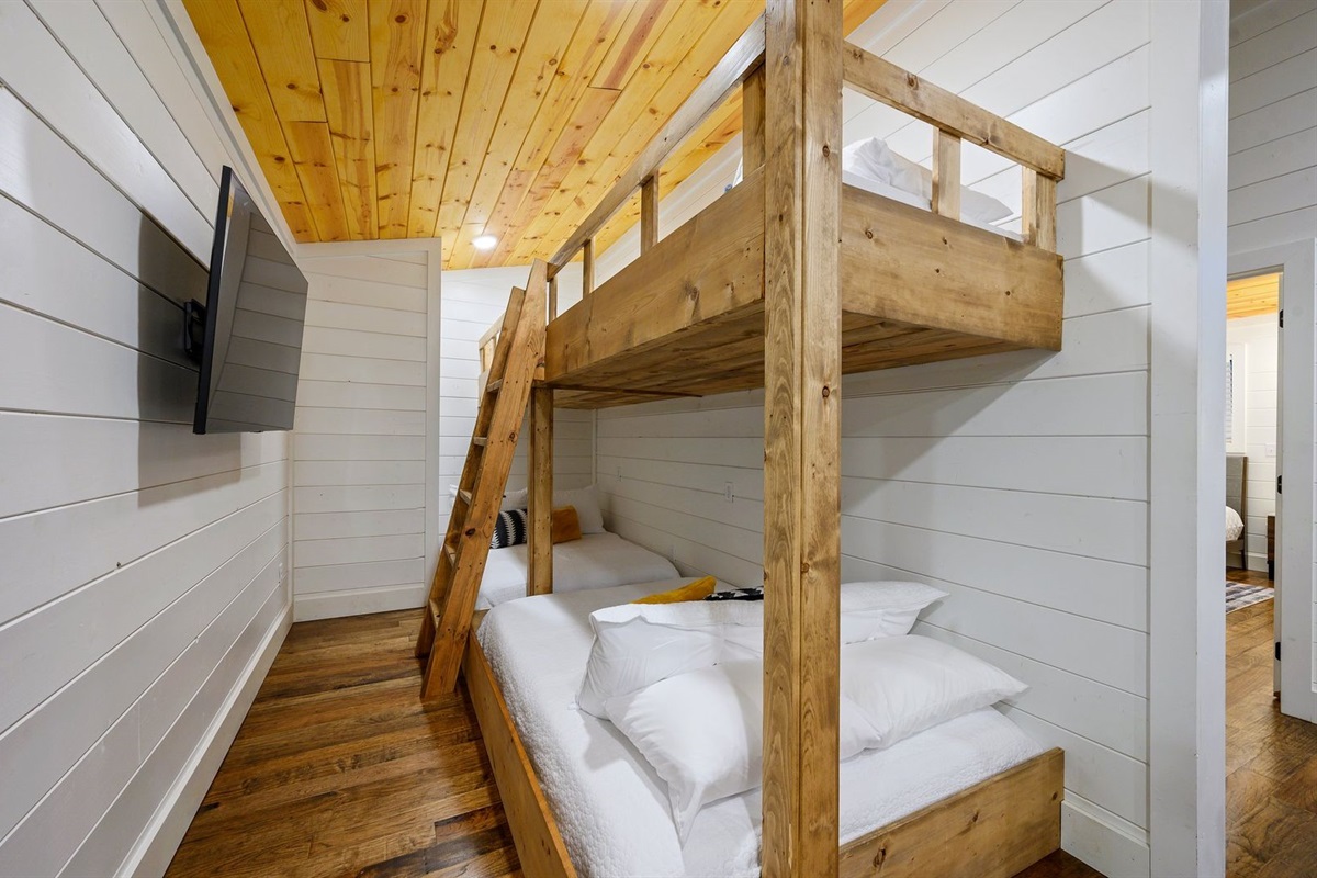 Upstairs bunk area (4 full beds + 4 twin beds)