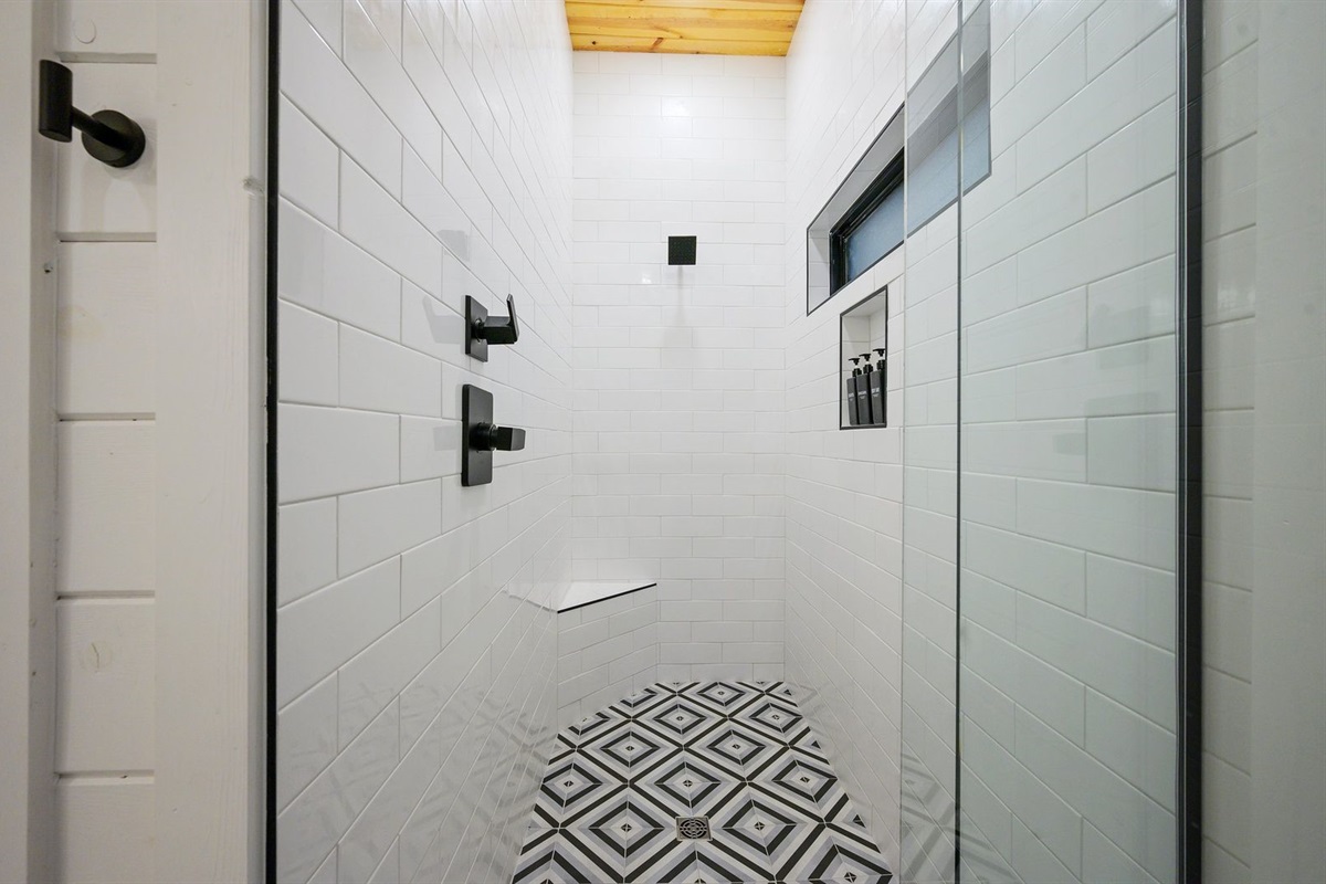 King Suite 3: King bed, TV, dresser, and private bath with walk-in shower.
