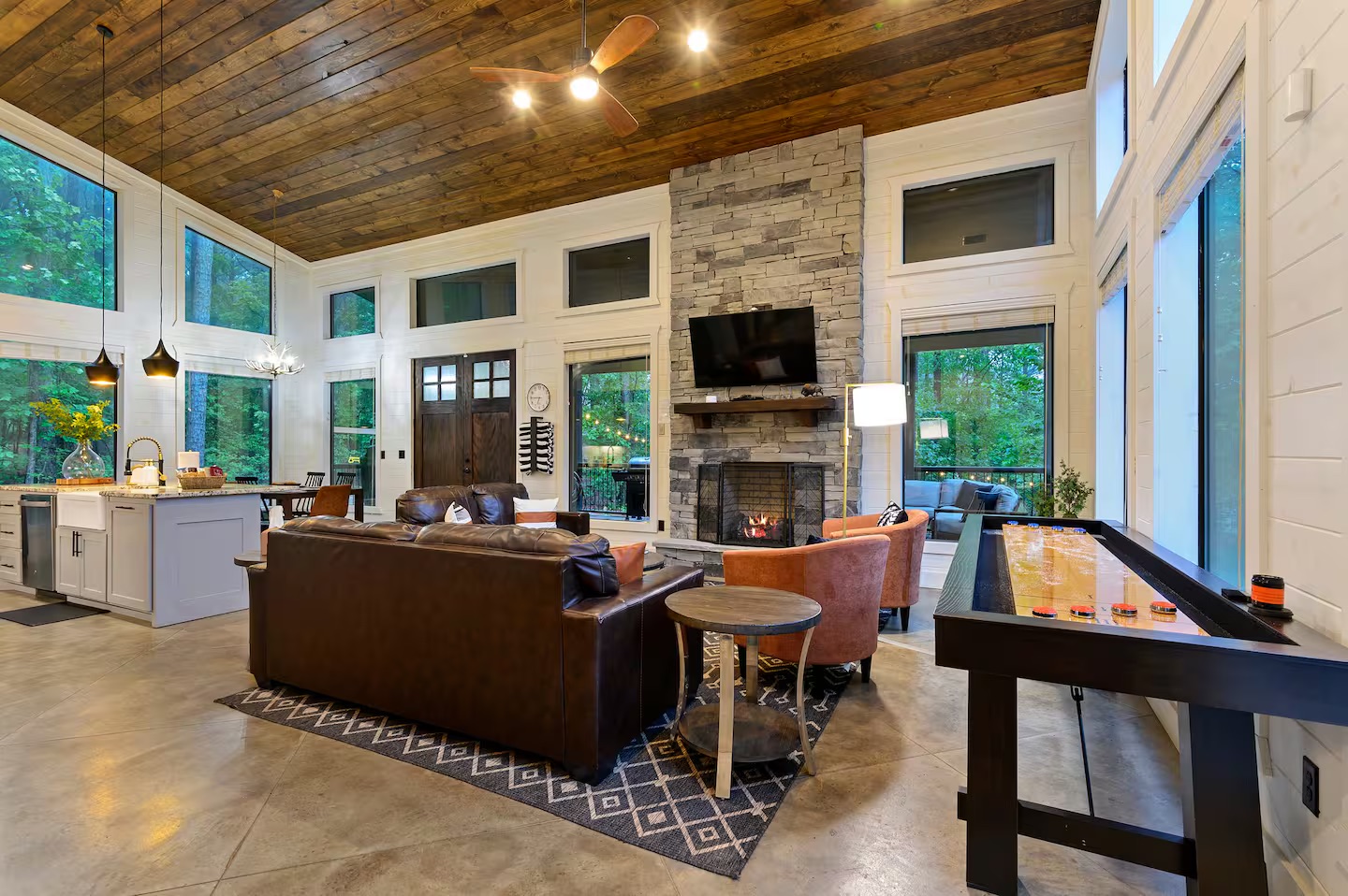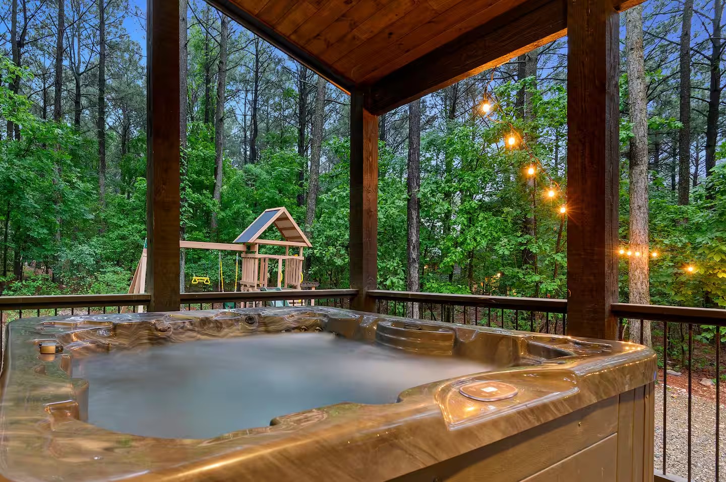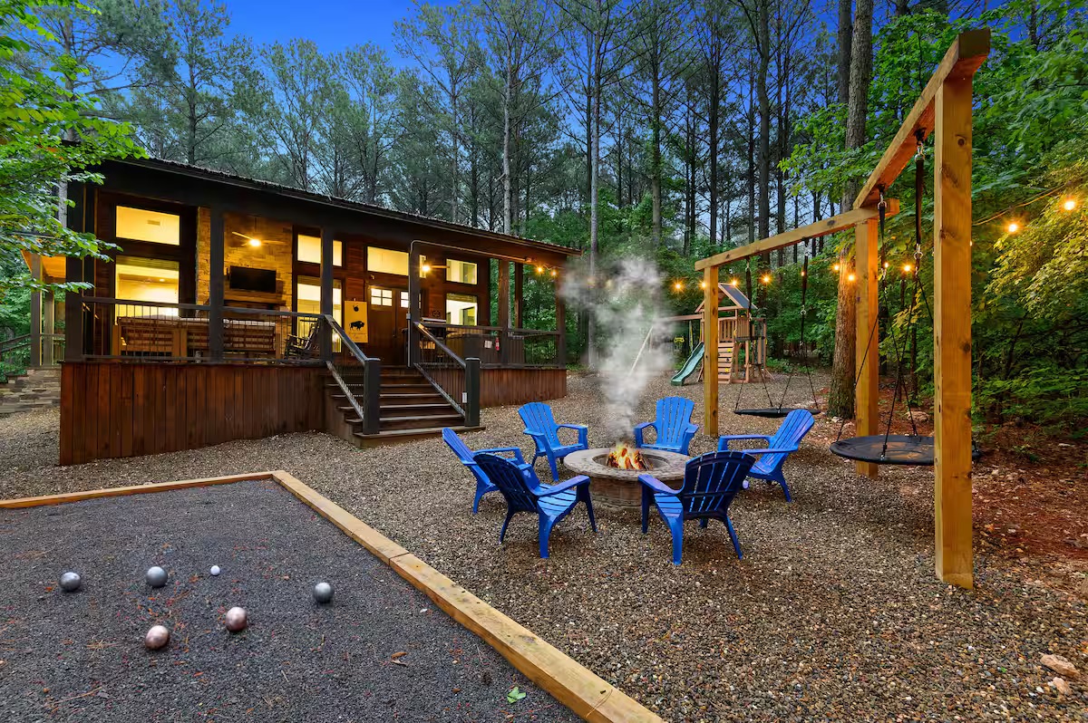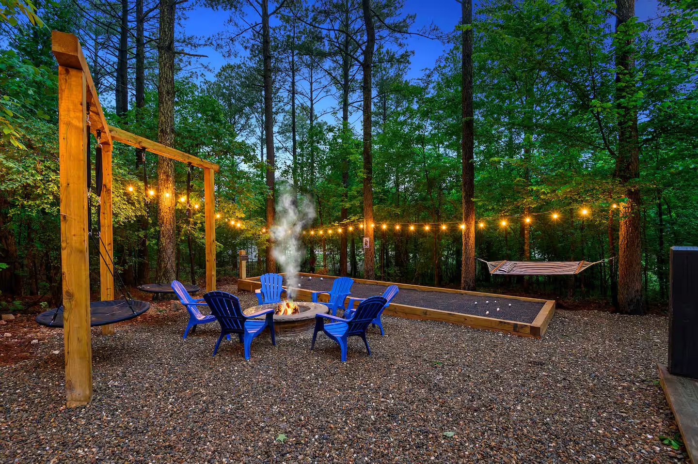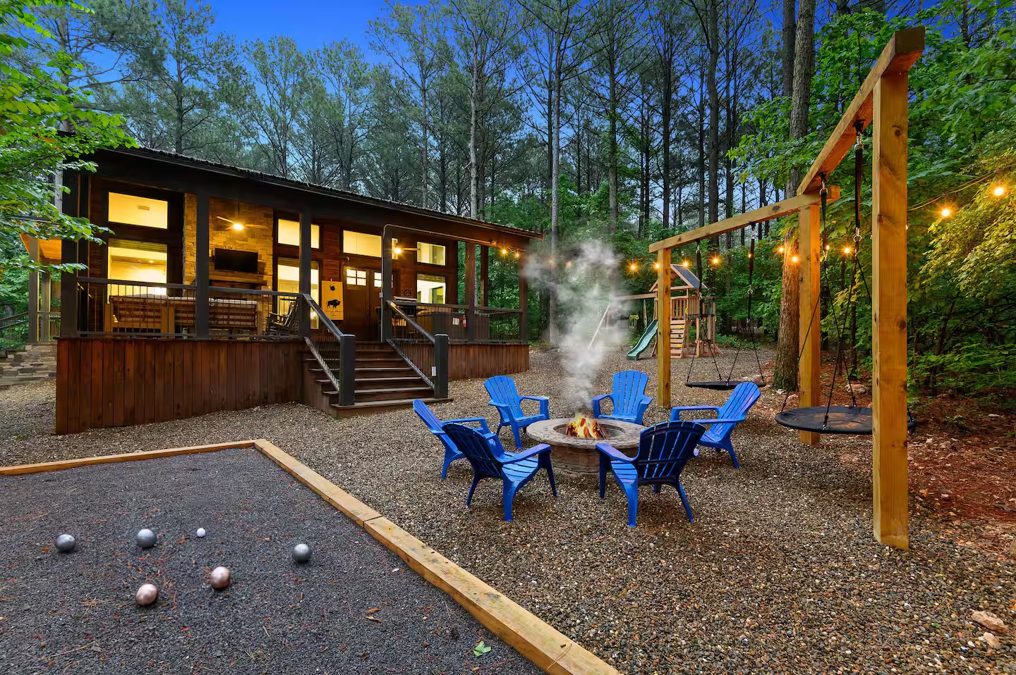 Relax in the hot tub, challenge friends to bocce ball or cornhole, swing by the fire pit, or watch movies by the outdoor fireplace & smart TV. Kids will love the playscape, while adults enjoy grilling under the stars.