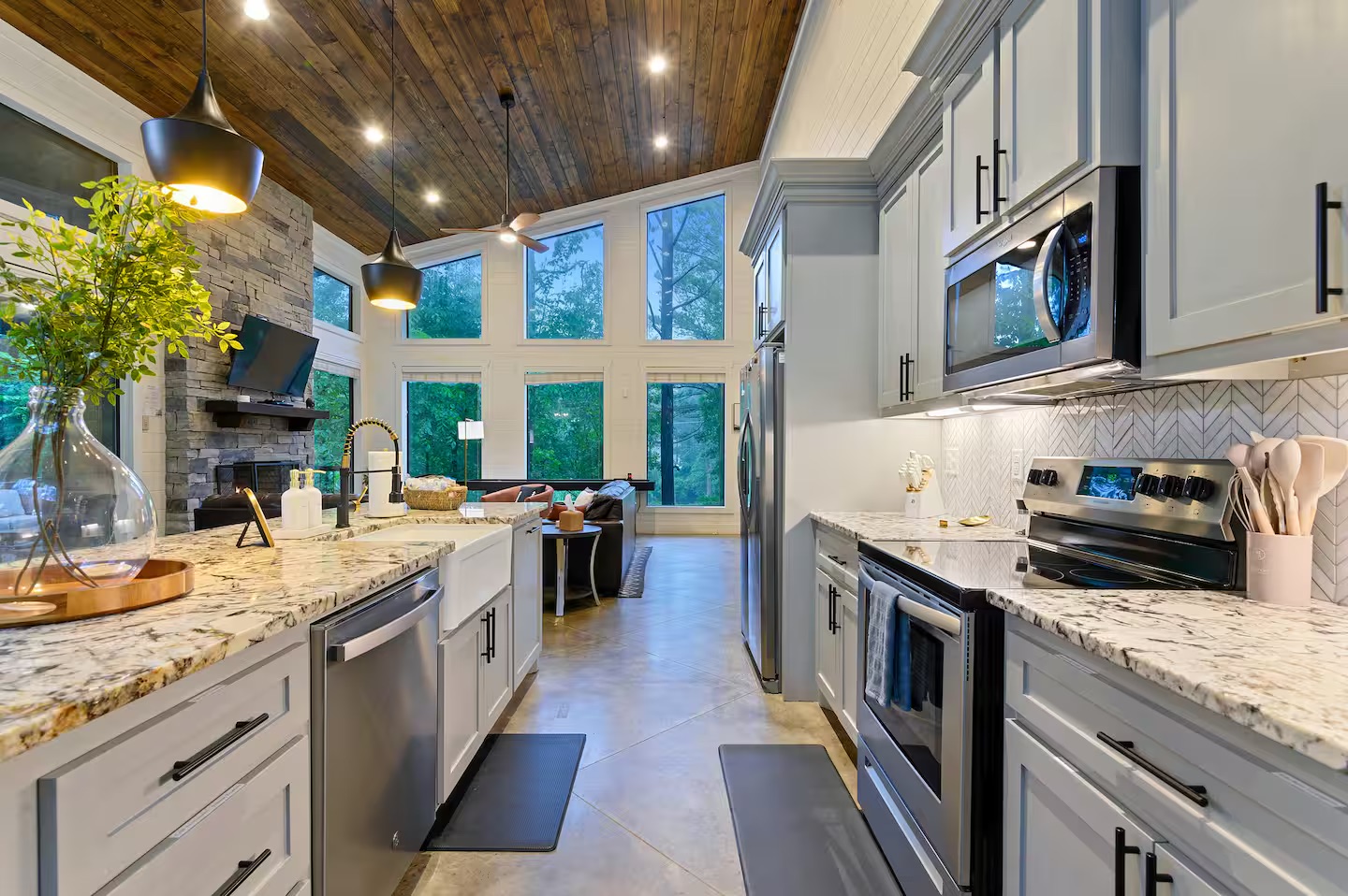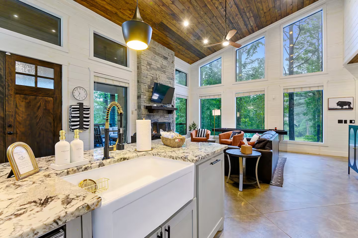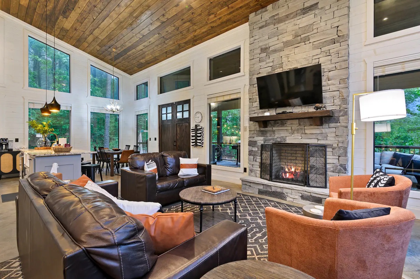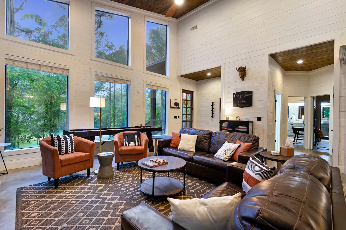 Relax in the hot tub, challenge friends to bocce ball or cornhole, swing by the fire pit, or watch movies by the outdoor fireplace & smart TV. Kids will love the playscape, while adults enjoy grilling under the stars.