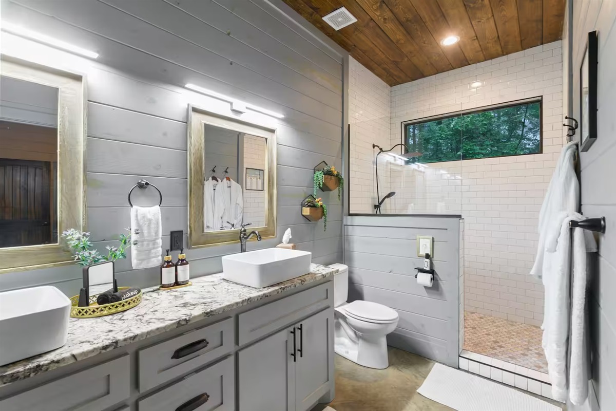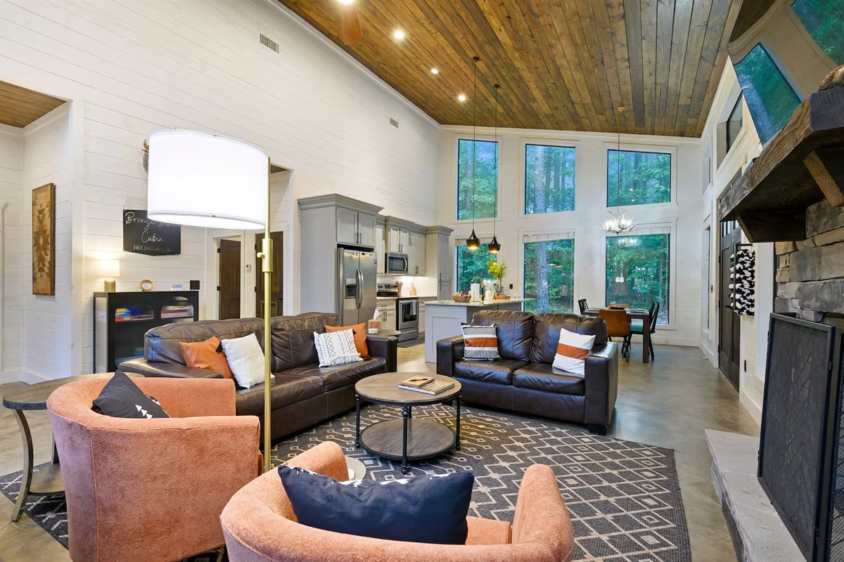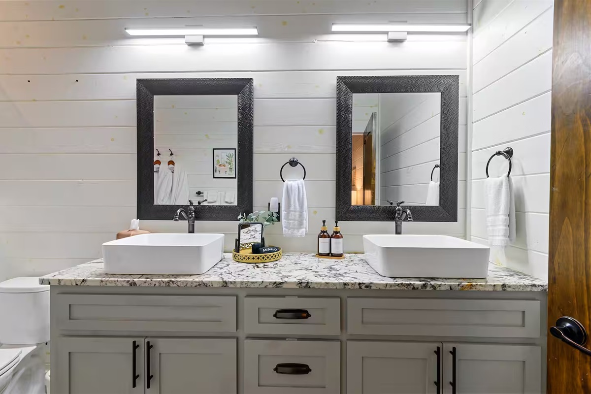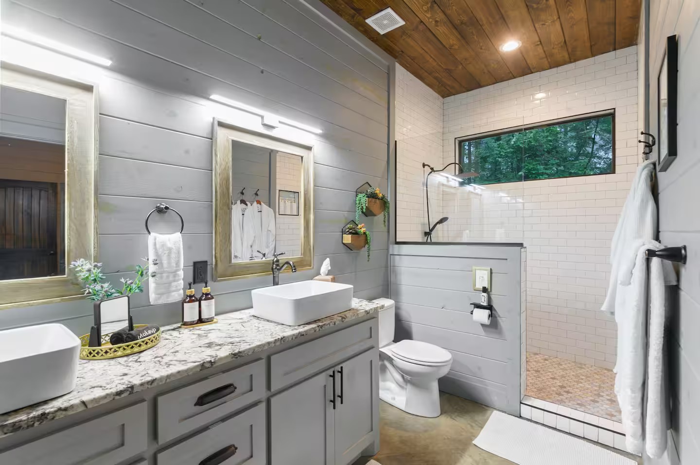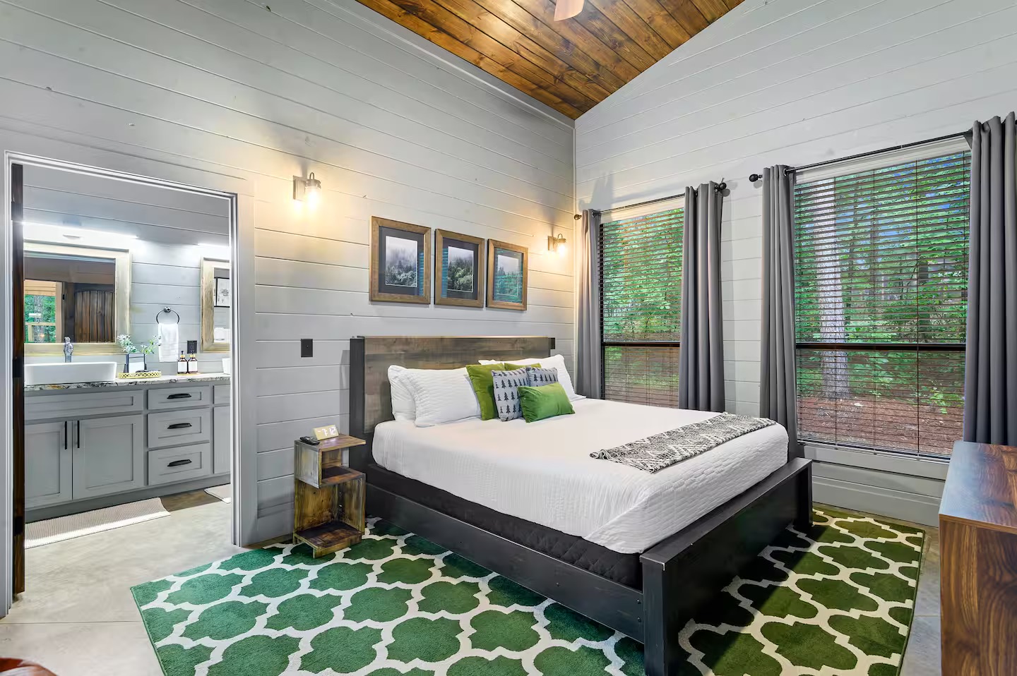 2 Bedrooms • 3 Bathrooms (2 full, 1 half) 3 Baths (2 full, 1 half) • Sleeps 2-6Escape to The Bronze Bison — a serene 2-bedroom, 2.5-bath luxury cabin tucked among the whispering pines of Broken Bow. Perfect for up to 6 guests, this peaceful retreat combines modern comfort with outdoor adventure.