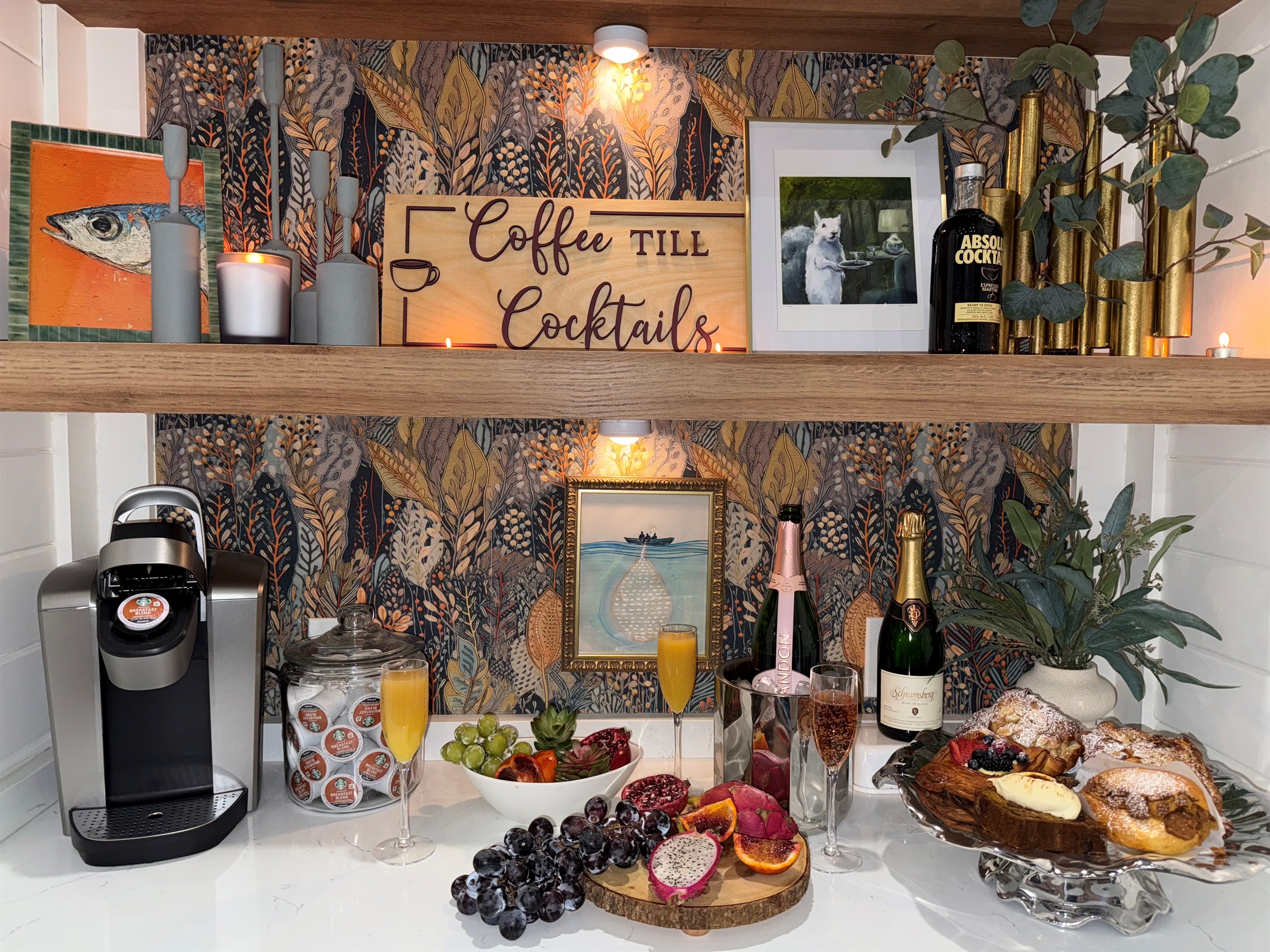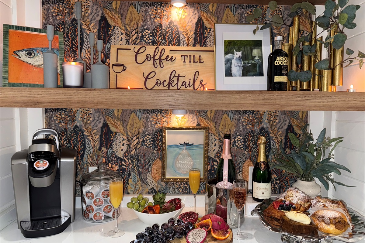 β Coffee bar with Keurig, filters, creamer & K-Cups