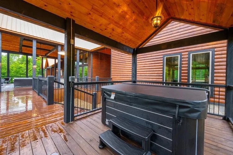 Nestled among towering pines and set beside a peaceful, flowing creek, Private Pines delivers a tranquil, private setting surrounded by nature. Step outside onto the grand outdoor deck, ideal for large gatherings, outdoor dining, or soaking in the beauty of Broken Bow. Gather around the outdoor firepit, unwind in two luxurious hot tubs, or explore a wide range of on-site amenities, including:
