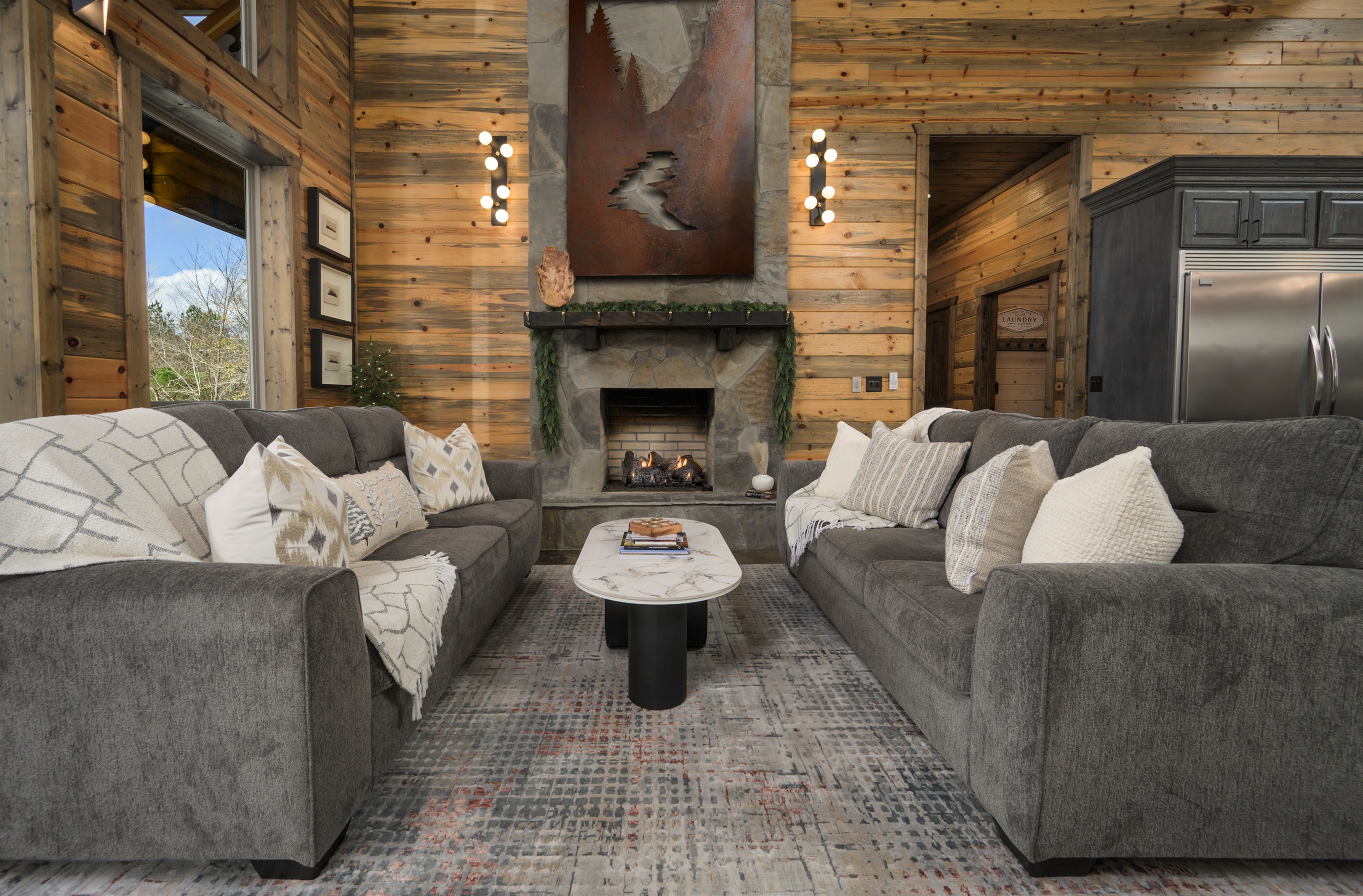 Stone fireplace