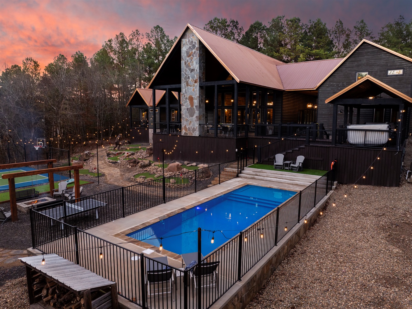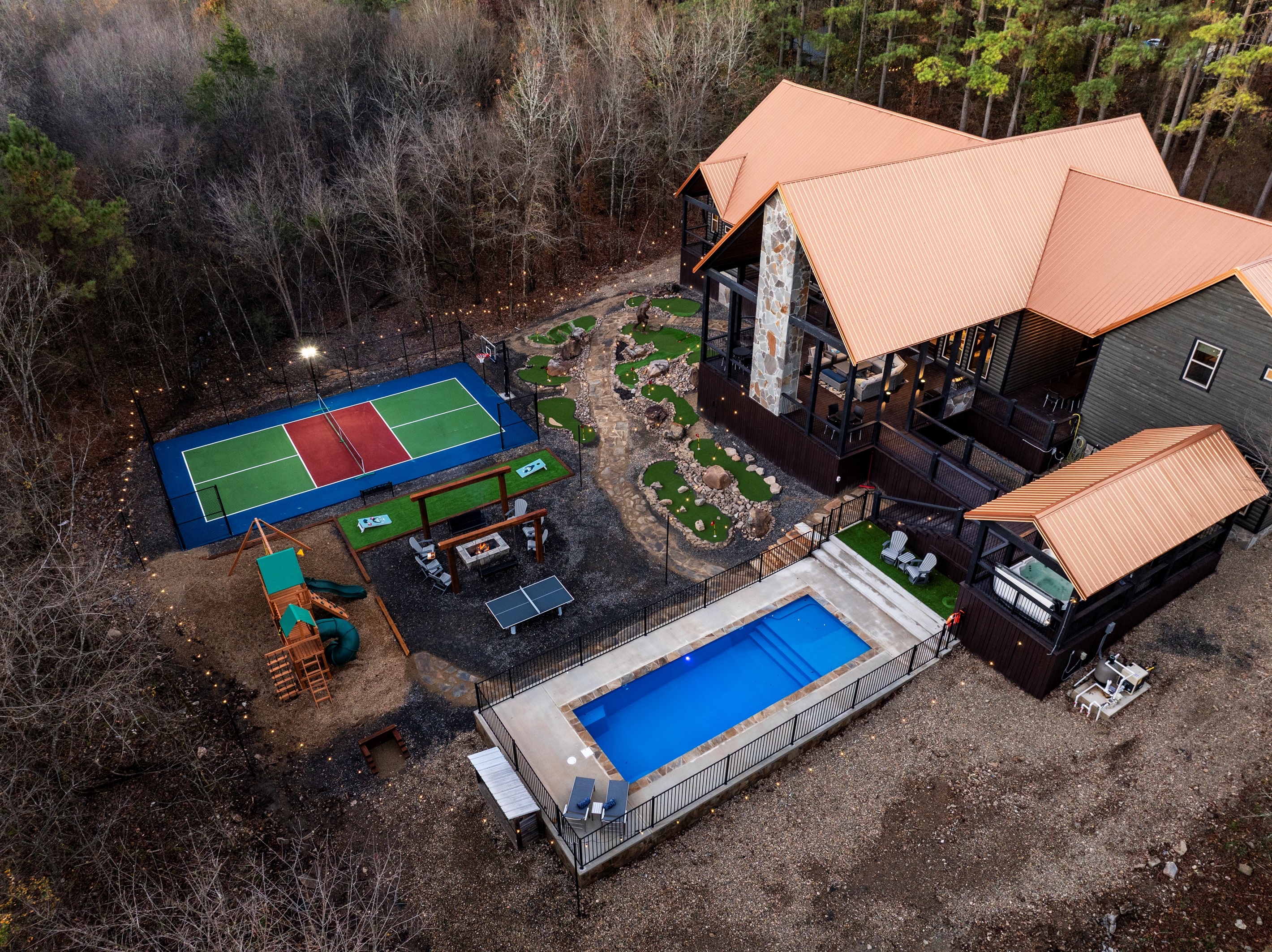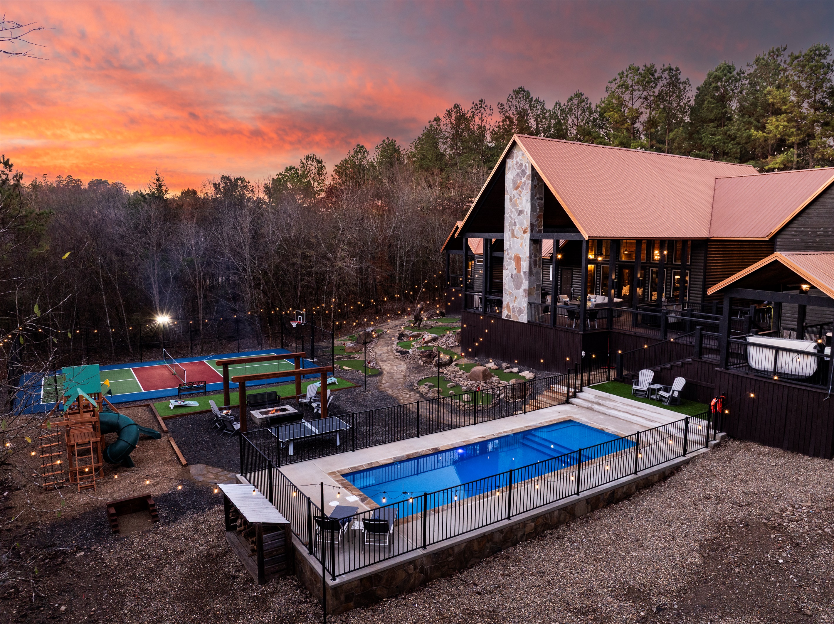 5 Bedrooms • 7 Bathrooms (5 full, 2 half) 7 Baths (5 full, 2 half) • Sleeps 1-27🌲 Private Pines – Epic Backyard Escape