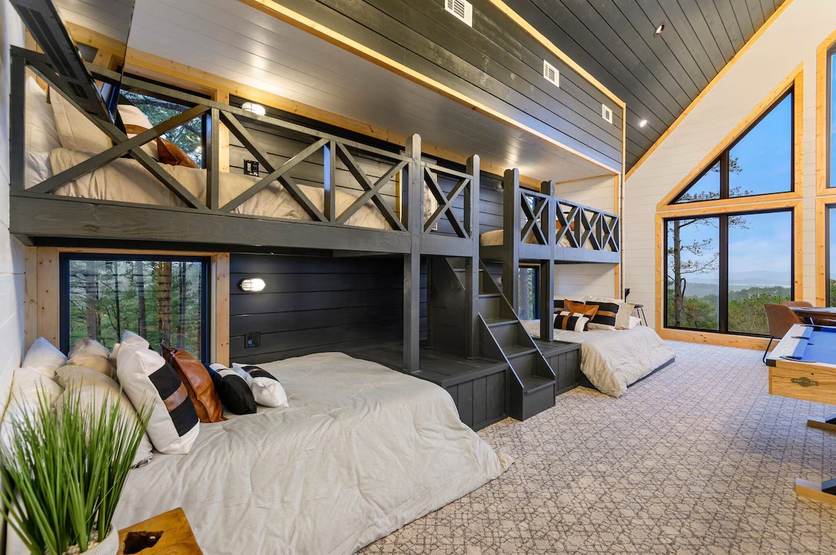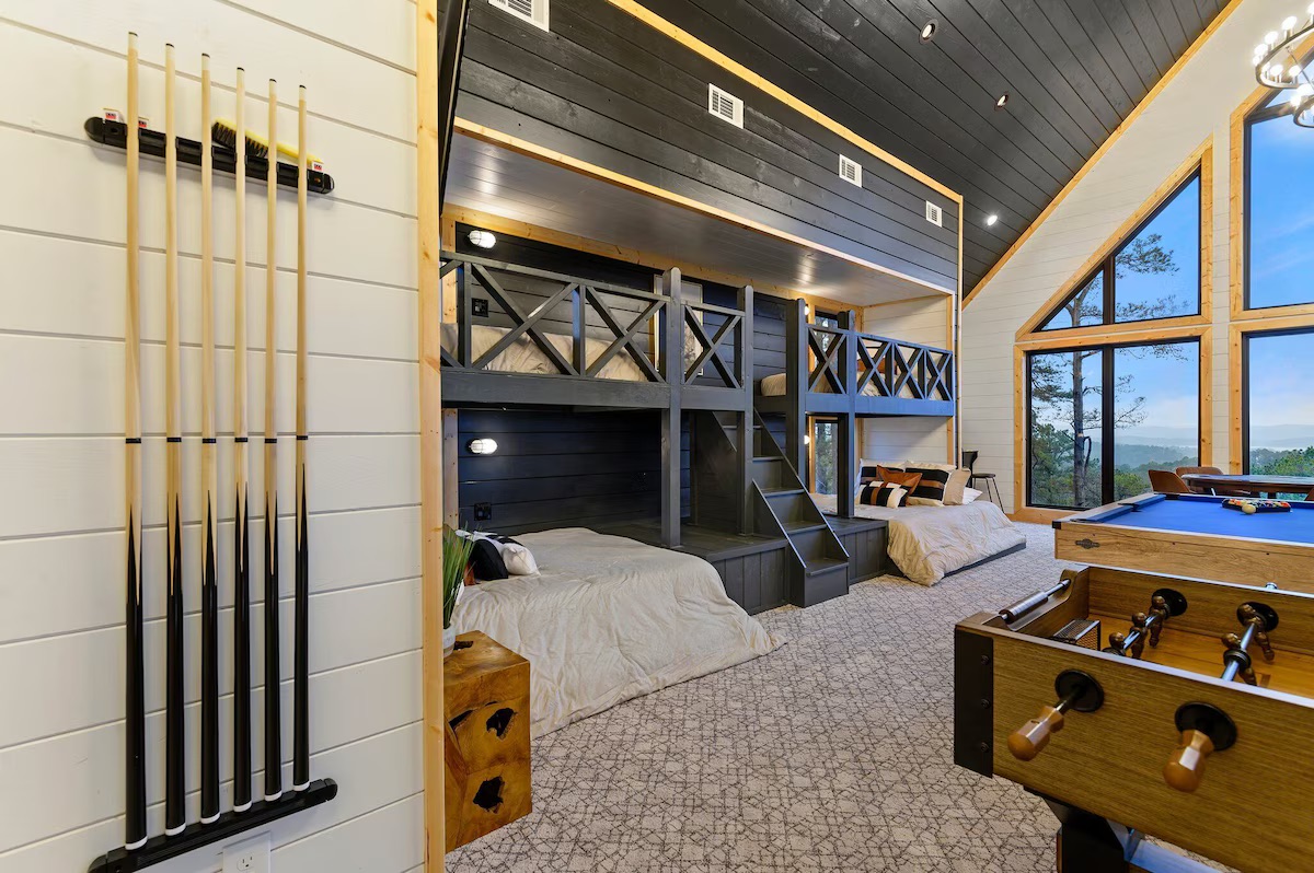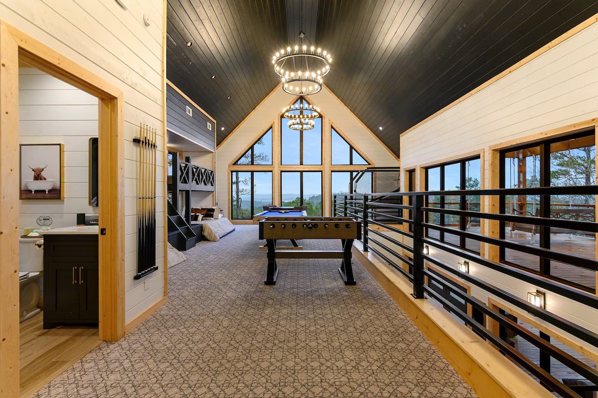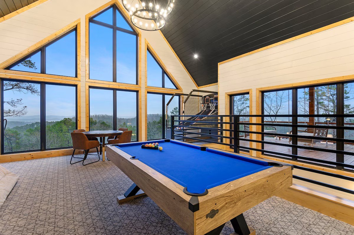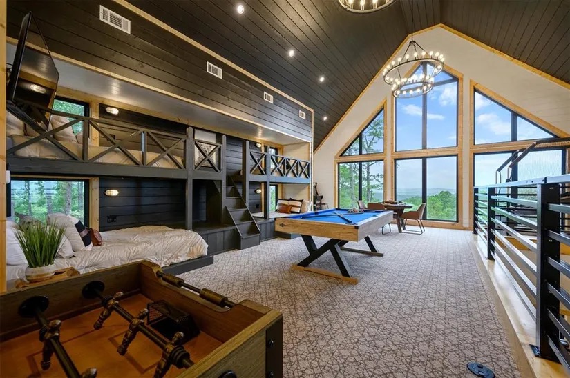 This 3-bedroom + loft gameroom cabin sleeps up to 15 guests and is packed with everything for relaxation, fun, and luxury ✨