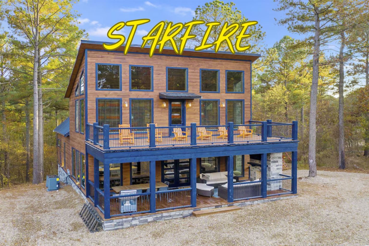 Welcome to StarFire, a modern luxury cabin tucked away on 1.5 acres of pristine pine forest. Designed for large families and groups, this stunning retreat comfortably sleeps up to 18 guests and features high-end amenities, beautiful craftsmanship, and endless entertainment both indoors and out.