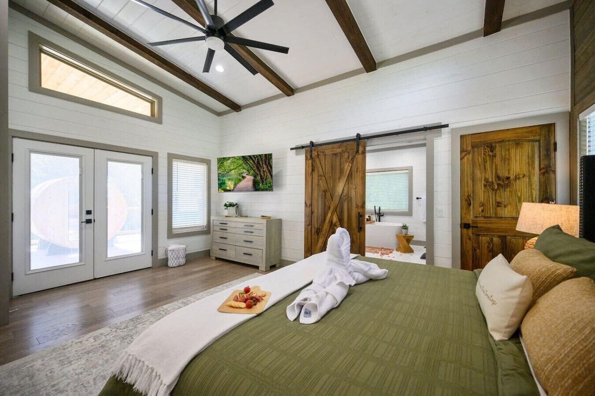 Welcome to Treetop Twosome, a quiet hideaway set high in the pines. This warm and stylish cabin is made for two and gives you the perfect mix of comfort and privacy. Enjoy slow mornings, soft evenings by the fire and peaceful moments surrounded by the forest. Dogs are welcome too.What You’ll Love