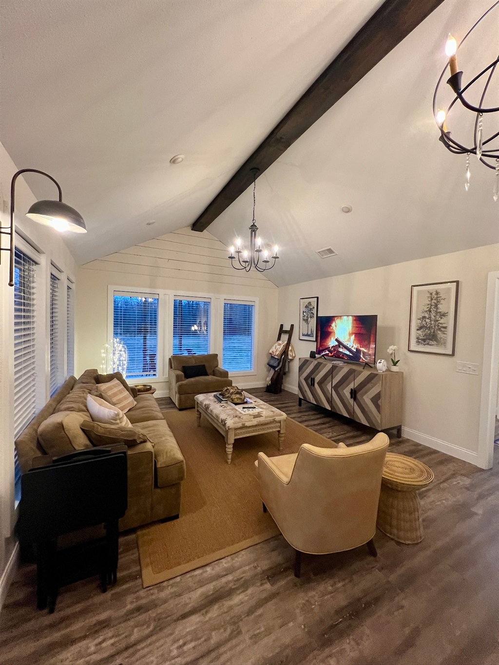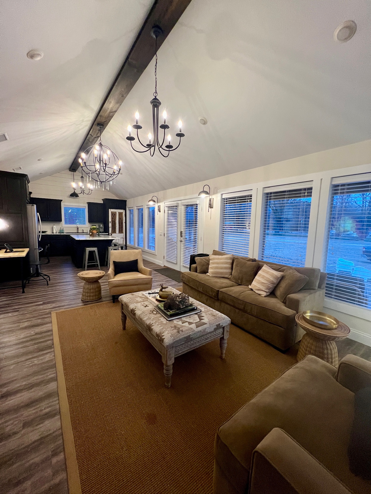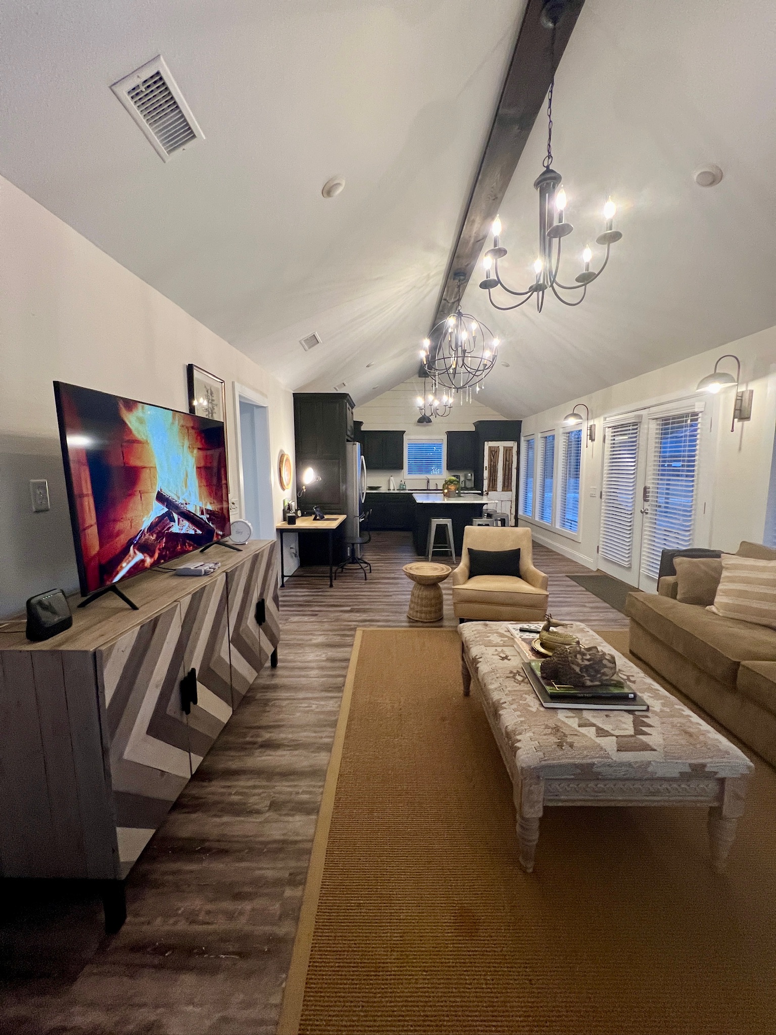 🌈 One of the standout features is its whimsical treehouse, affectionately named “Lost & Found” 🏕️. With colorful stained-glass windows 🪟 and a cozy loft vibe 💤, it’s perfect for extra guests or simply adding a touch of magic ✨ to your stay. There’s room for everyone — bring your boat 🚤, ATV 🛻, or even an RV 🚐. Enjoy the firepit 🔥, game room 🎯, and inviting outdoor spaces that make it easy to unplug and reconnect with nature 🌿 (and each other 💛).