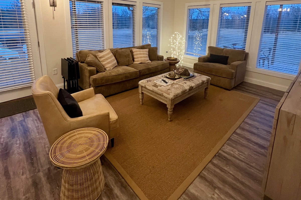 3 Bedrooms • 1 Bathroom 1 Bath • Sleeps 1-8🌲 Tucked away on 5 serene acres, The Whispering Willow is a peaceful retreat where comfort meets charm ✨. This cozy 🏡 3-bedroom home with a bunk room offers everything you need for a relaxing stay — from a fully equipped kitchen 🍳 to a bubbling hot tub under the stars 🌌. Enjoy meals on the porch 🍽️, unwind by the firepit 🔥, and take in the beauty of the tree-studded landscape 🌳. Whether you’re sipping ☕ at sunrise 🌅 or roasting marshmallows at night 🌙, this property invites you to slow down and soak it all in.